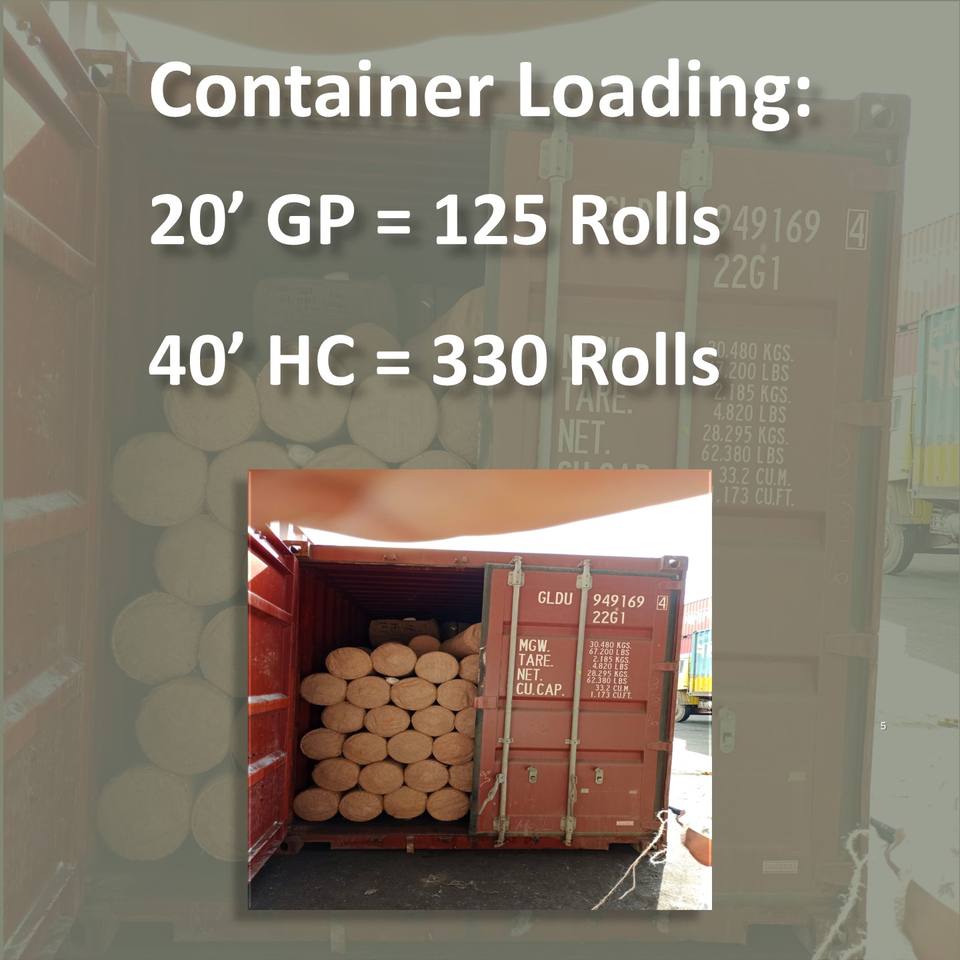 125 rolls per 20ft or 330 roll per 40ft HC Container