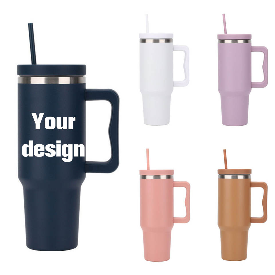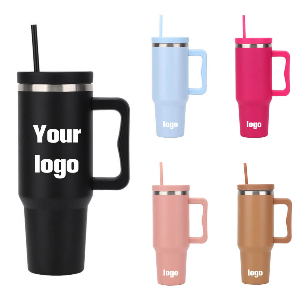 40 oz Stainless Steel Customized Color Logo Tumbler Straw Handle Lid 0-6 Hours Thermal Insulation for Hot/Cold Beverages Back