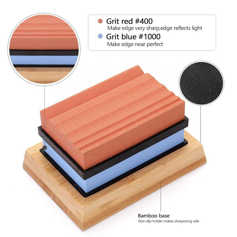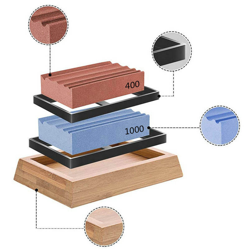 400#/1000# Grit Premium Whetstone Grooved Cut Sharpening Stone Set Sharpener for All Blade Non Slip Base Cutter Sharpener
