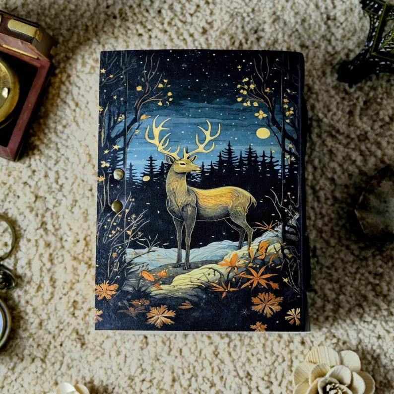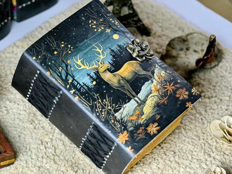 Type:Large Deer Vintage Handmade leather Journal Grimoire Fat journal