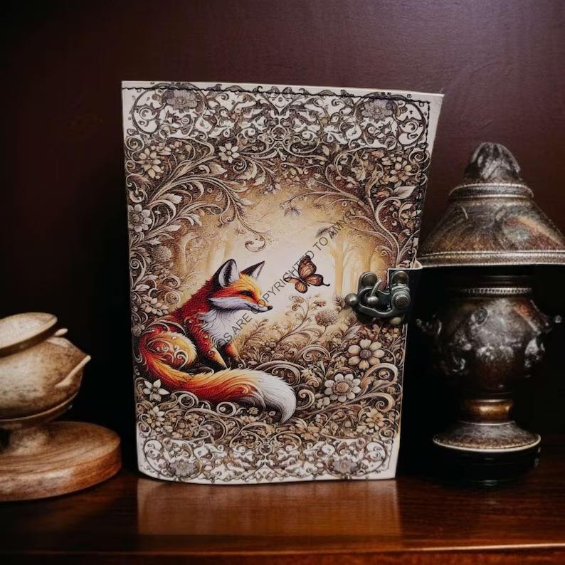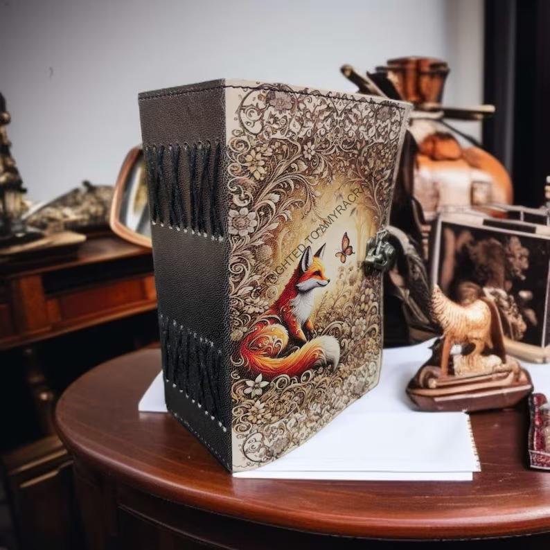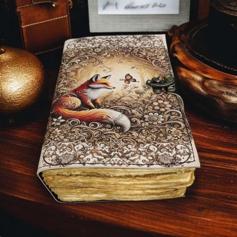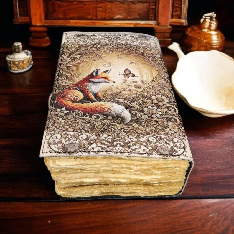 Type:Large Fox Vintage Handmade leather Journal Grimoire Fat journal