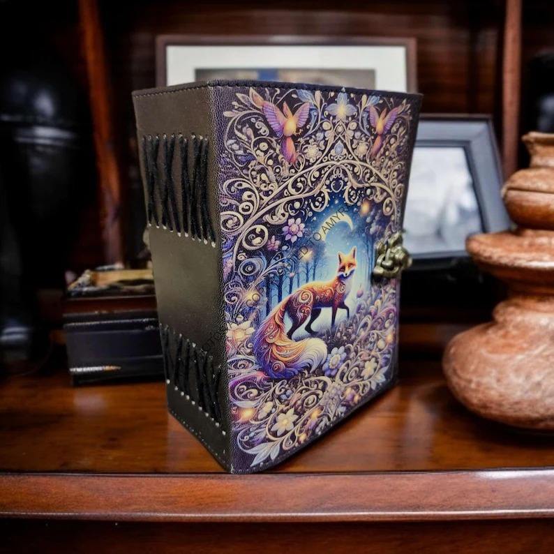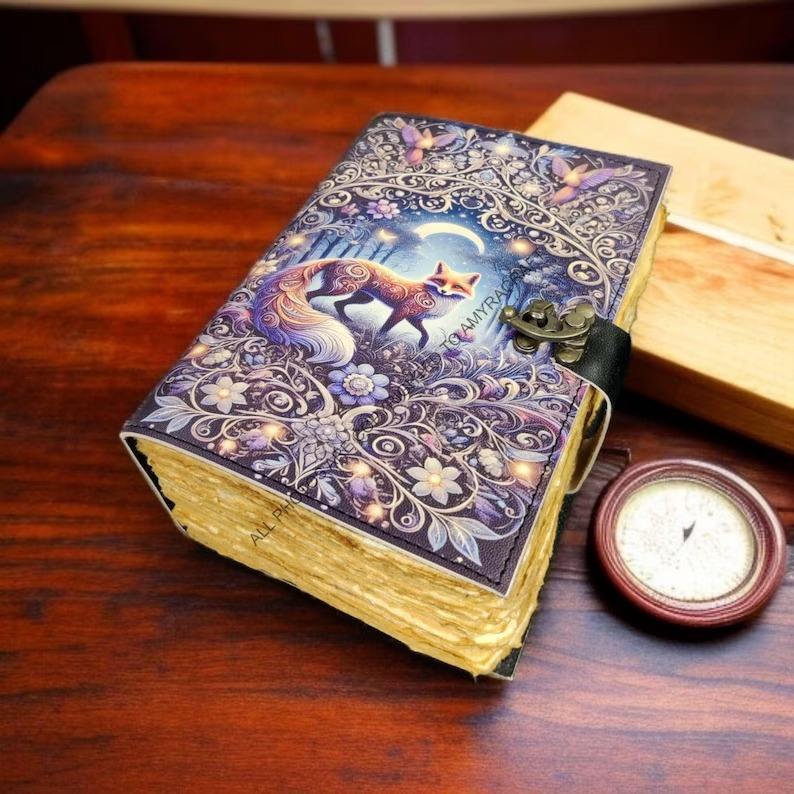 Large Fox Vintage Handmade leather Journal Grimoire Fat journal