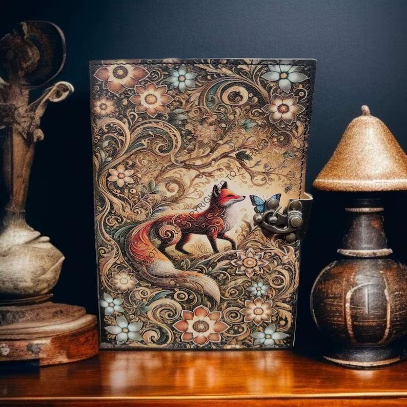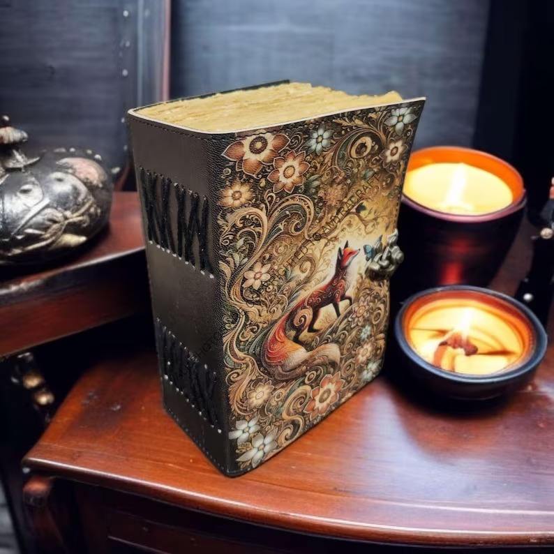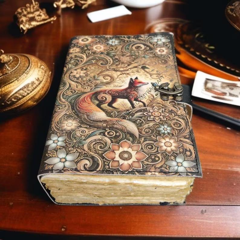 Type:Large Fox Vintage Handmade leather Journal Grimoire Fat journal
