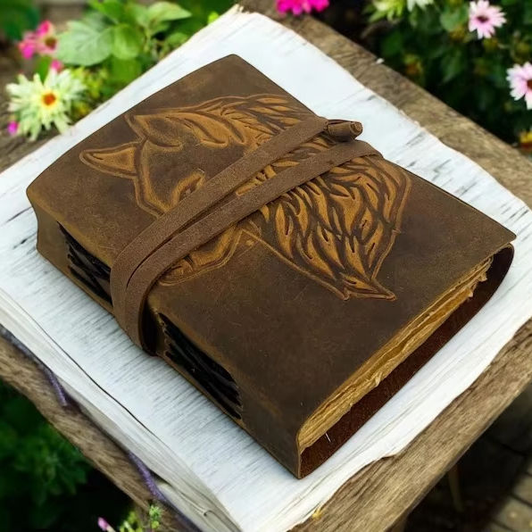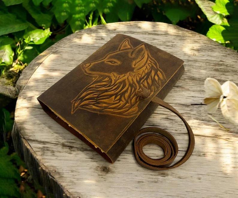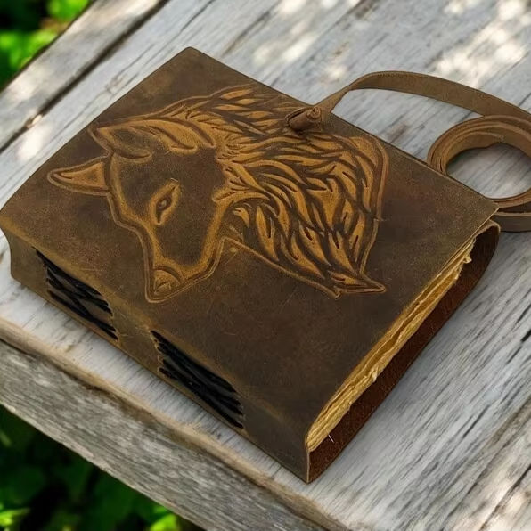 Type:Grimoire Fox Embossed Leather Journal Blank Spell book of shadows