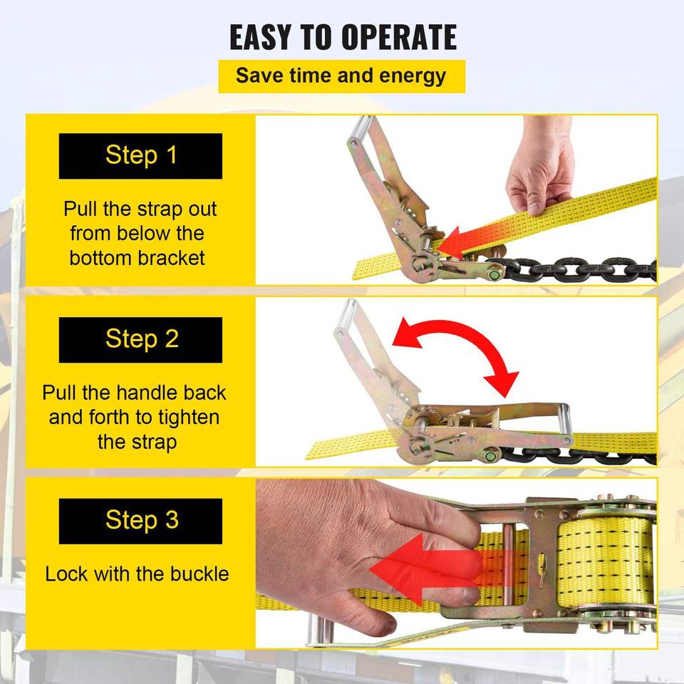 4000 Lbs Working Load 4 Pack Heavy Duty Ratchet Tie Downs 2'' X 9.8' Tie Straps 11.8'' Chain Anchors for Moving Motorcycle Cargo