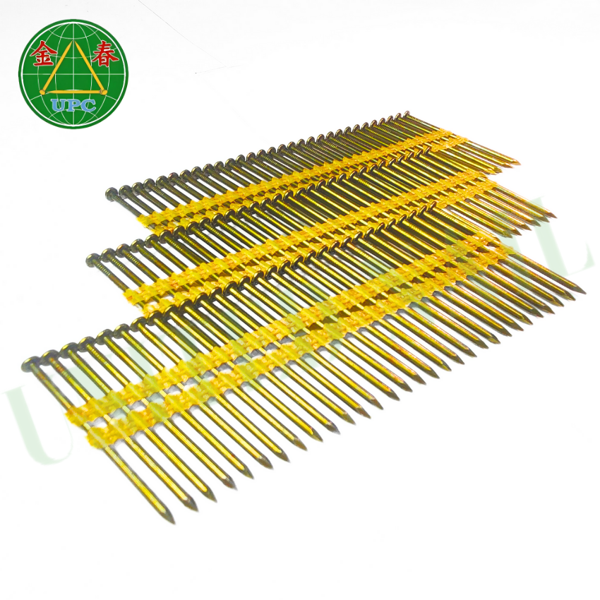 4000pcs 3'' x 0.120 Yellow Galvanized Steel Strip Framing Nails with Smooth/Spiral/Ring Shank & Checkered Head for Wood Working
