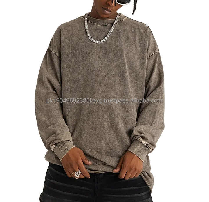 400gsm Heavy thick french terry acid wash distressed vintage crewneck men's hoodie & sweatshirt