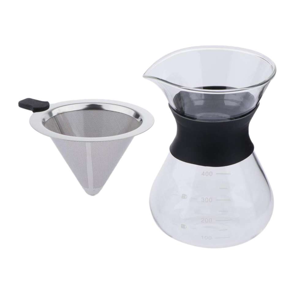 400ml Portable Stainless Steel Filter Dripper and Ceramic Coffee Maker Set Wood Glass Coffee Tea Tools with Filter for Travel