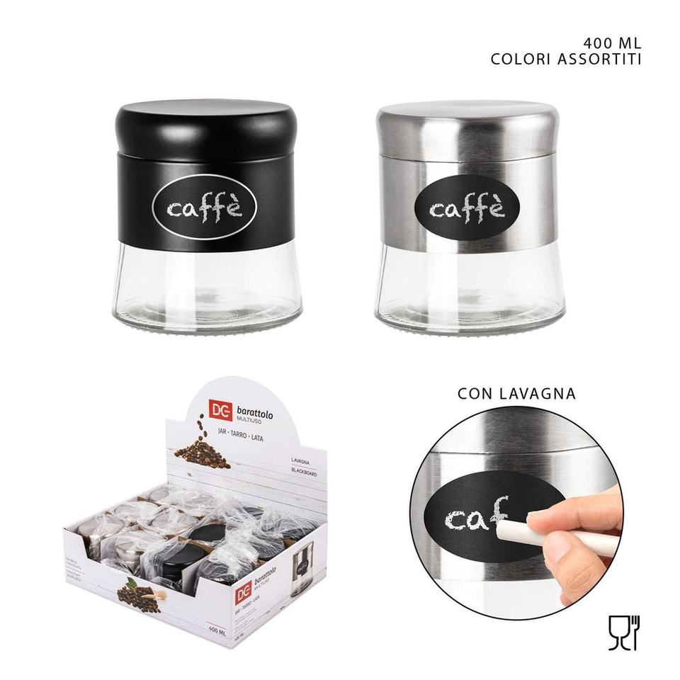 400ml Silver/Black Glass and Steel Jar - Glass Jars and Kitchen
