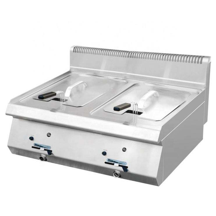 Kingbetter 400mm Depth Commercial Gas Two Tank Stainless Steel 10KW CE Certified Double Burner Deep Fryer Machine for Fried
