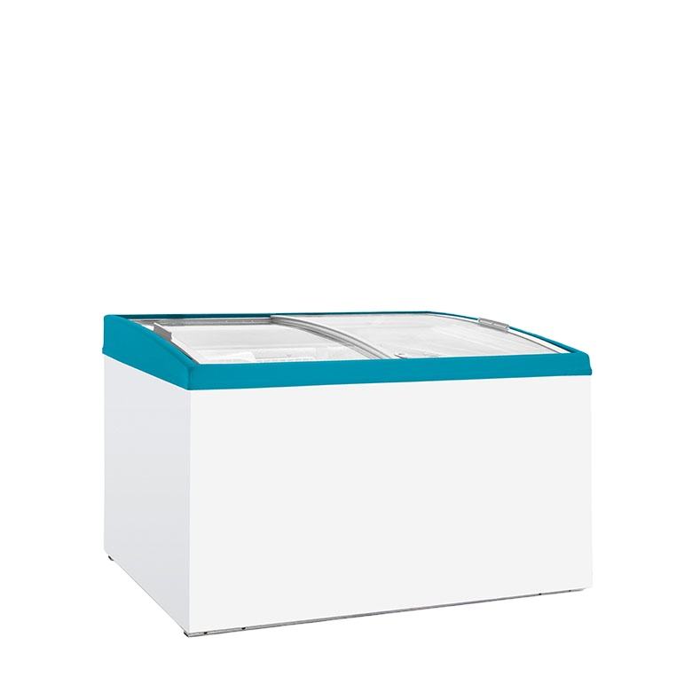 408 L Commercial Supermarket Angled Sliding Curved Glass Chest Deep Freezer Refrigerator Ice Cream Fridge Conservator