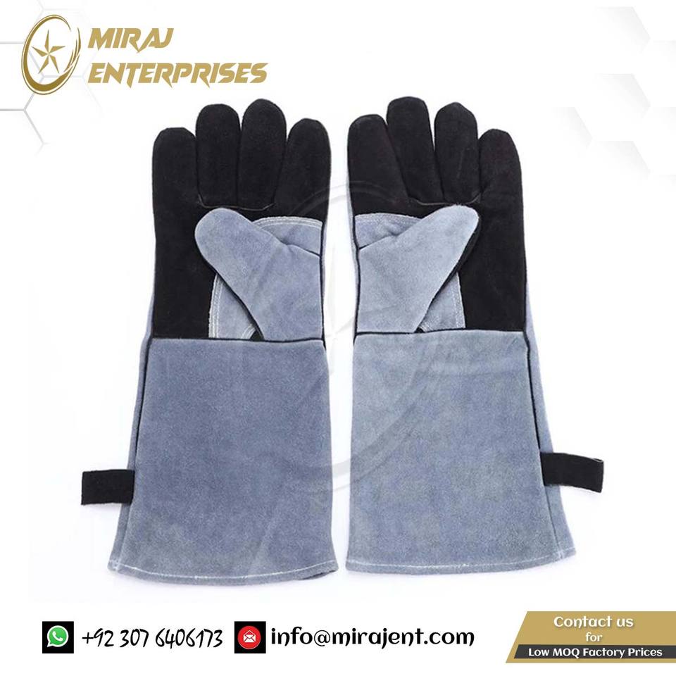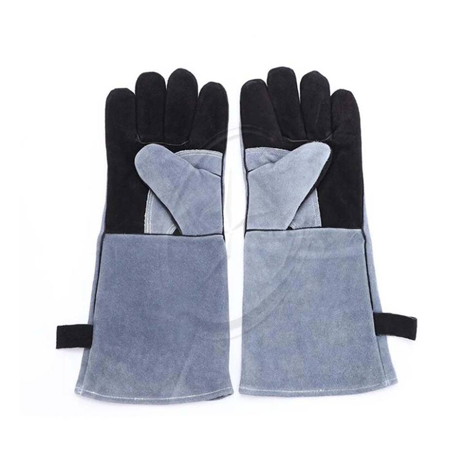 40cm Leather Gloves From Pakistan Heat & Fire Resistant With Wool Lining Outdoor Animal Handling Garden Work Welding Oven BBQ