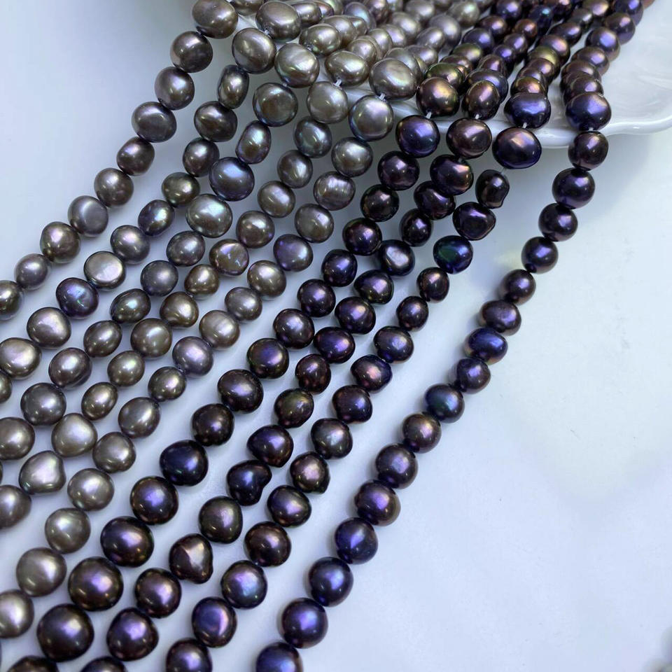 40cm Long 5-6mm Strong Light Flawless Short Fat Natural Freshwater Rice Beads DIY Material Loose Pearls