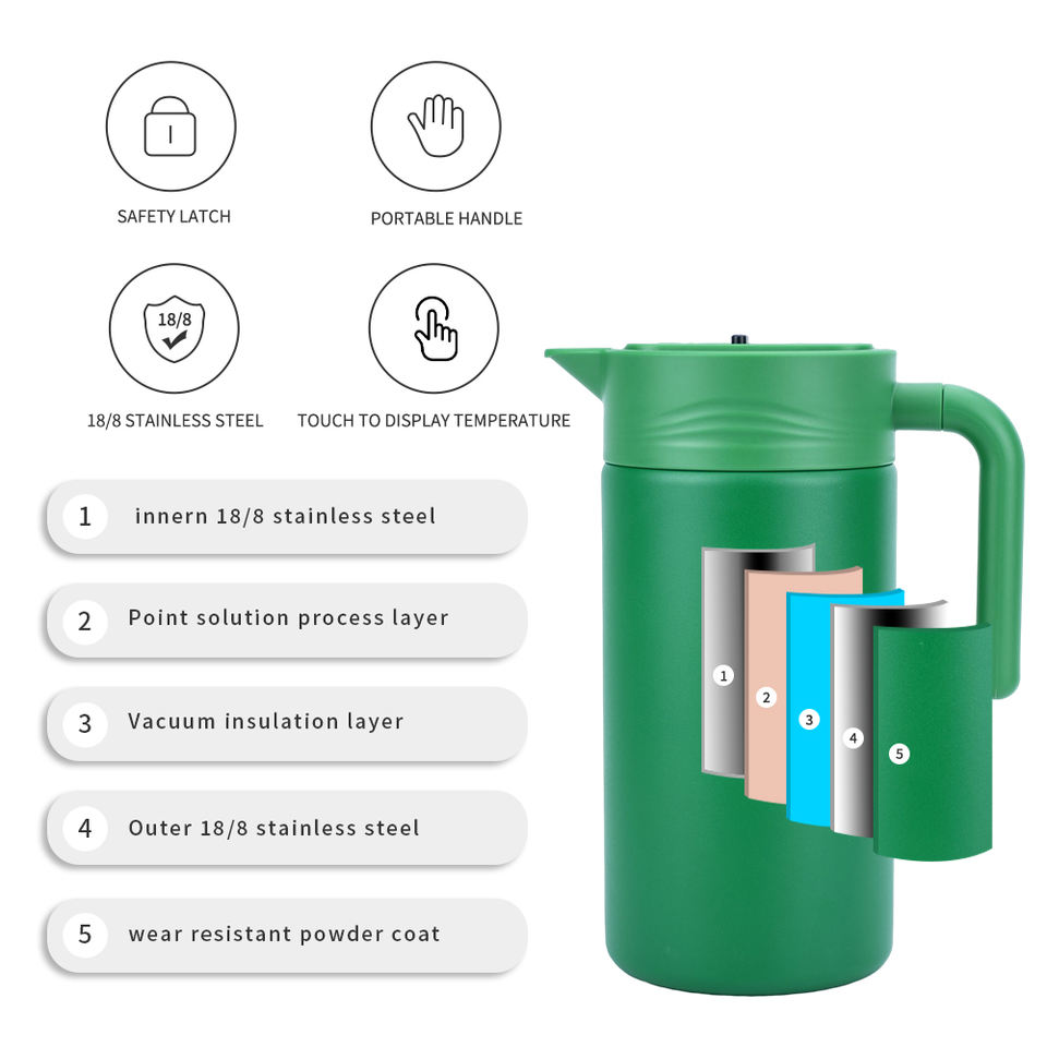 40oz 54oz Large Capacity Coffee Pot with Led Display Intelligent Warm Tea Pot 304 Stainless Steel Office Thermal Insulation Pot