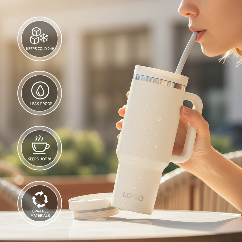40oz Double Wall Stainless Steel Vacuum Insulated Tumbler Handle Straw 24 Hour Thermal Insulation Reusable BPA Free Outdoor Use