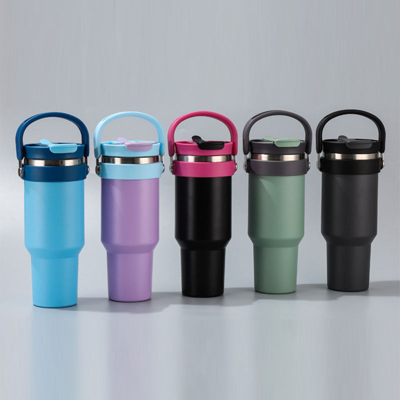 40oz New Design Mugs, Double Wall Stainless Steel Tumbler Steel Vacuum Insulated Beer Tumbler With Handle And Straw/
