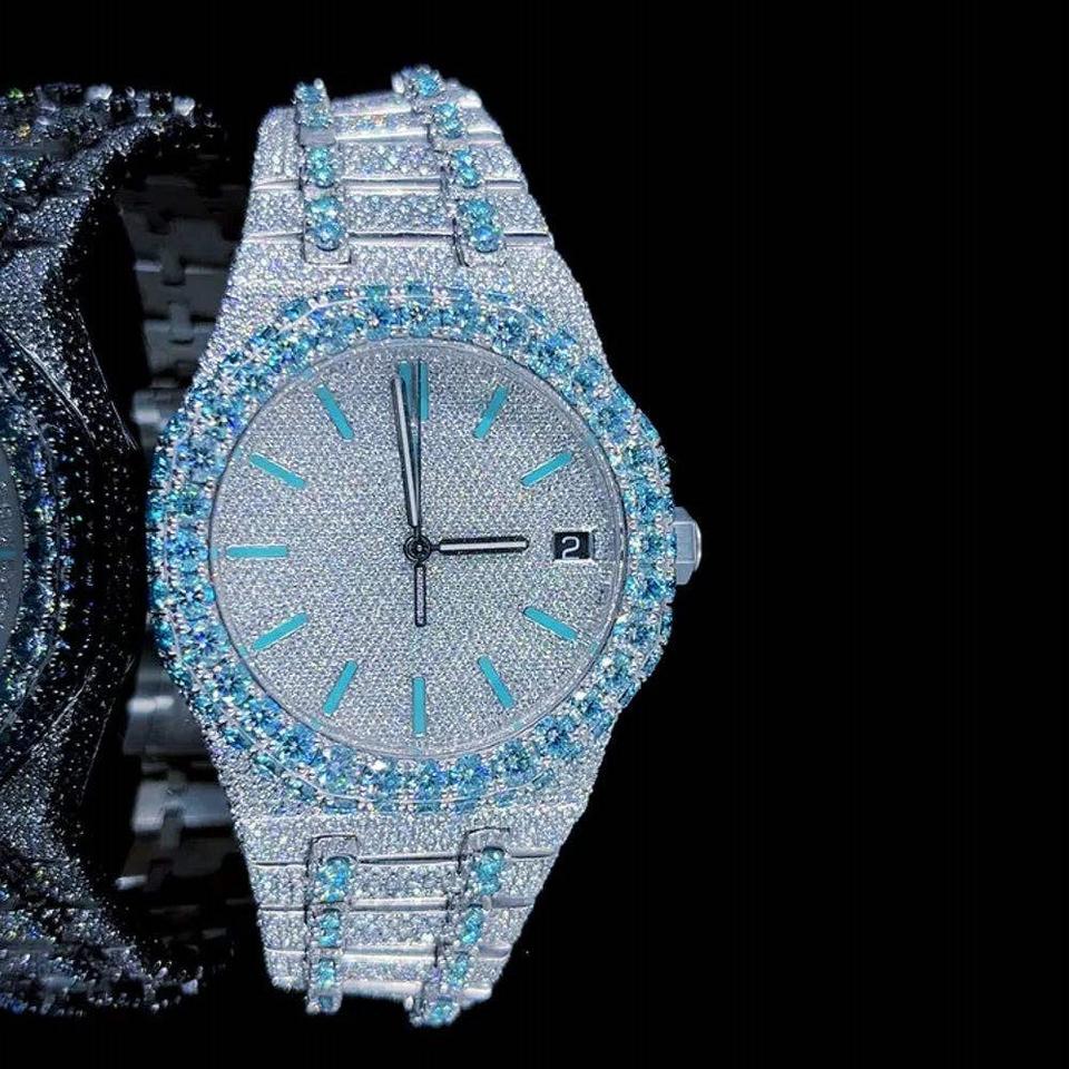 41MM Luxury VVS Moissanite Diamond Iced Out Hip Hop Automatic Movement Mechanical Wrist Watches for Him Her Birthday Gifts
