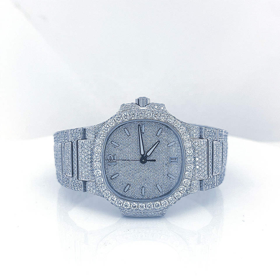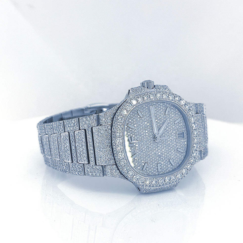 41MM Premium Quality Antique Fully Iced Out Moissanite Diamond Round Case Shape Dial with Watch for Men's