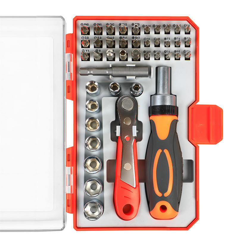 42-in-1 Ratchet Screwdriver Set (Gray Bottom Box, Orange)
