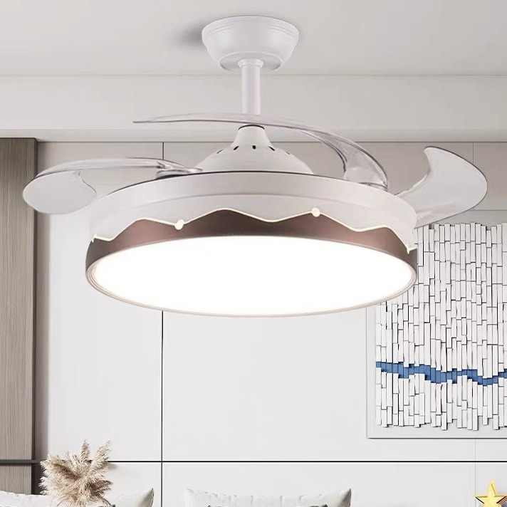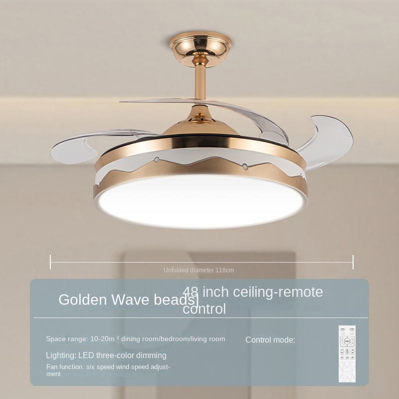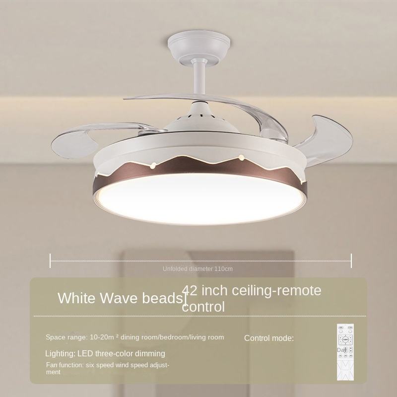 42-Inch Decorative LED Ceiling Fan with Invisible for Bluetooth Retractable DC Copper Motor Gas-Powered USB Source for Household