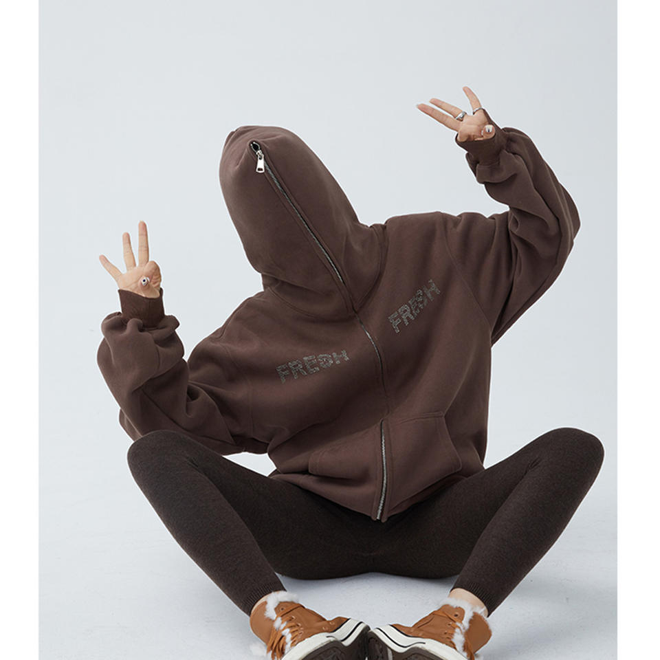 420 GSM Cotton Fleece Heavyweight Zipper Hoody Blank Custom Rhinestone Hoodie Full Zip up Designer Streetwear