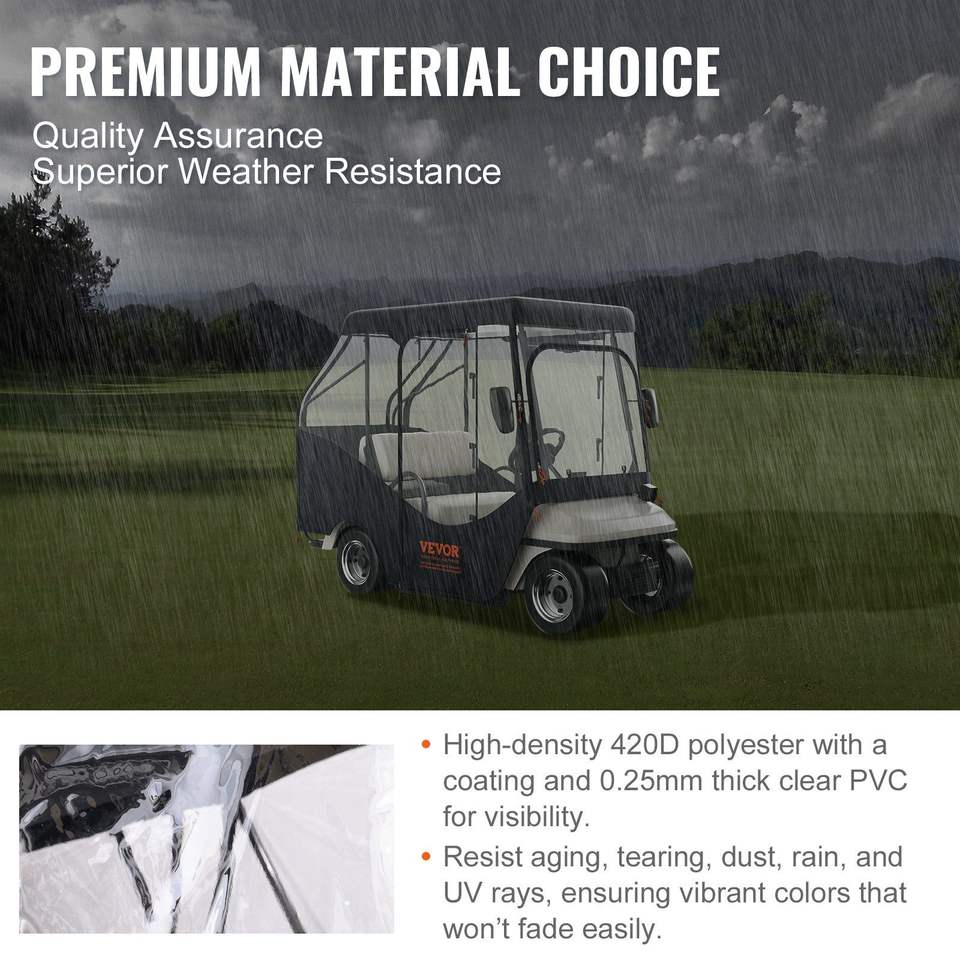 420D Polyester Golf Cart Enclosure 4-Passenger Club Car Covers 4-Sided Transparent Windows Sunproof Dustproof Outdoor Cart Cover