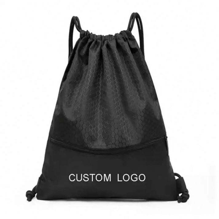 420d Polyester Sports Storage Drawstring Bags Custom Logo Fitness Drawstring Bag With Zipper Pocket Promotion Drawstring Bag