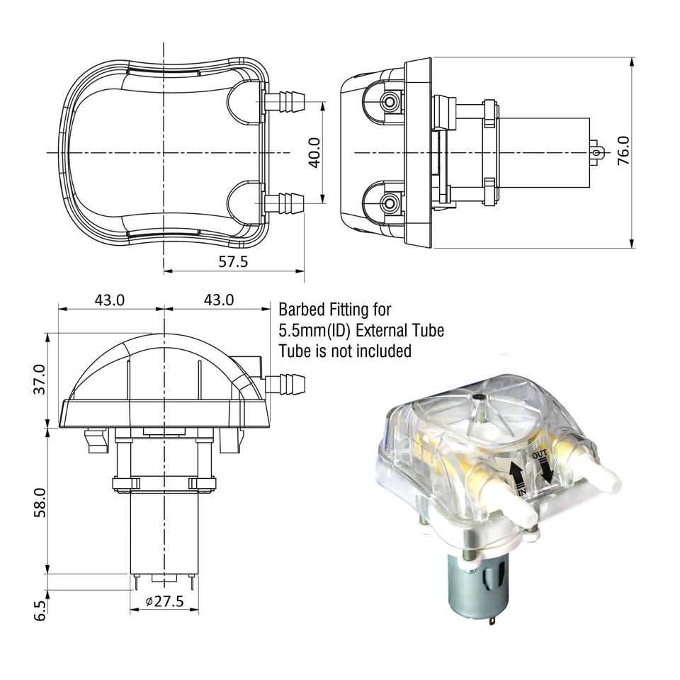420ml/mim 3 Rollers 12V Low Pressure Peristaltic Pump with Exchangeable Pump Head PharMed BPT Tube for Drinking Water Treatment