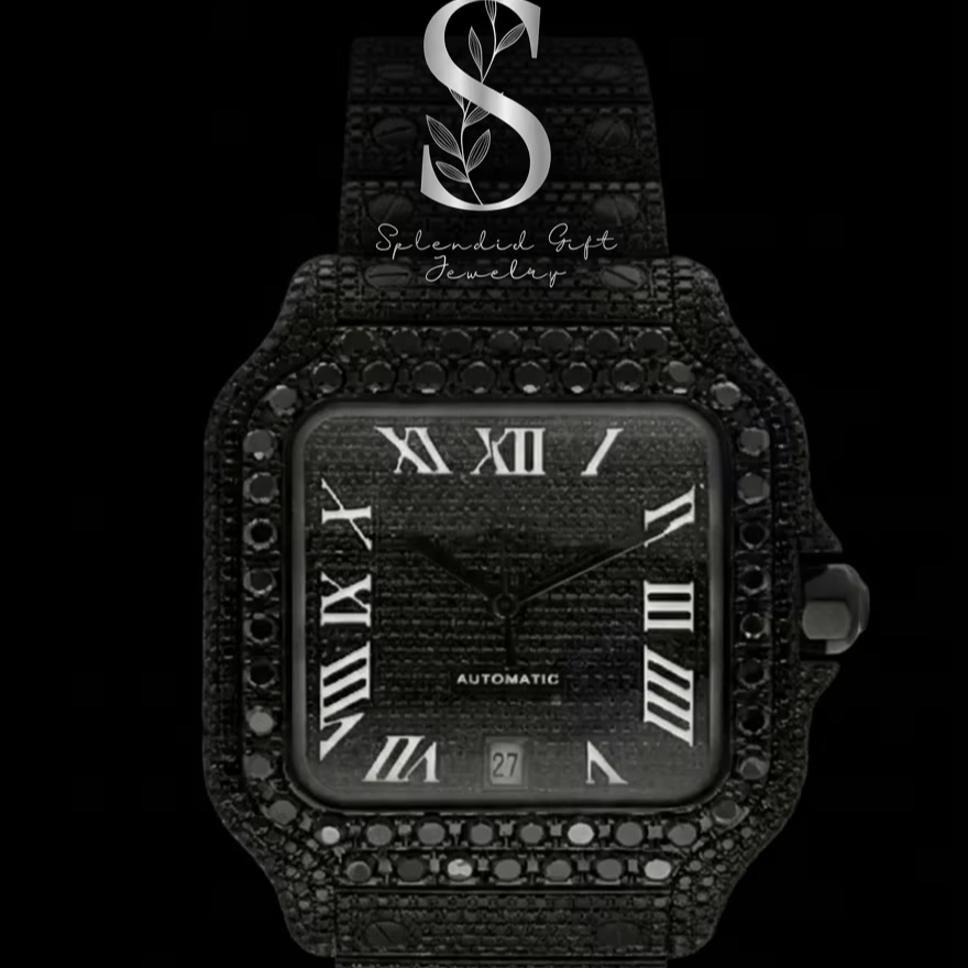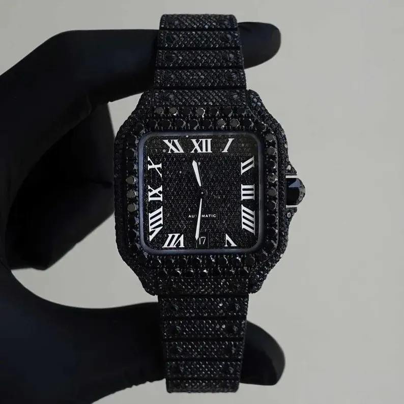 42mm Black Dial Fully Automatic Roman Numeral VVS Moissanite Diamond Bussdown Diamond Watch for Men's Fashion