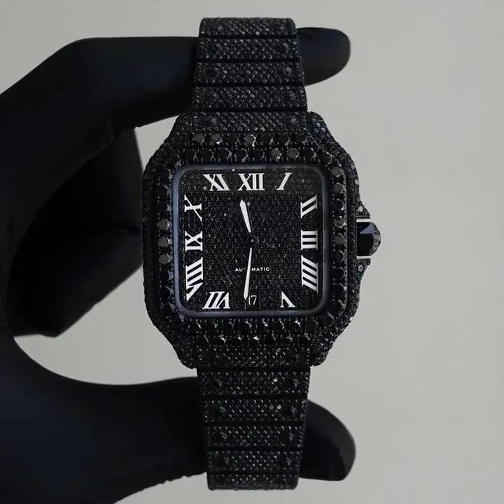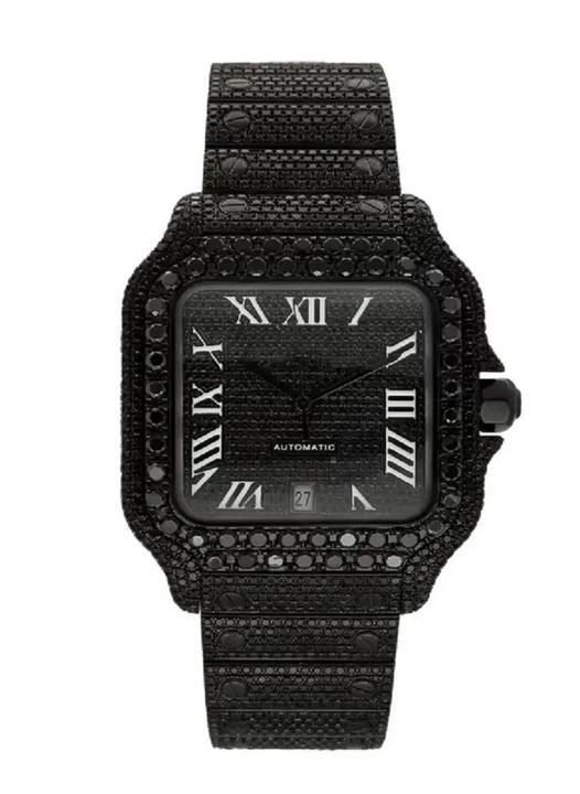 42mm Black Dial Fully Automatic Watch for Men VVS Moissanite Diamond Bust Down Luxury Roman Numeral HipFashion Jewelry Timepiece