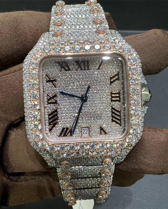 42mm Gold Stainless Steel Box Watch with VVS1 Moissanite diamond, Moissanite Diamond Square Watch, Fully Iced out Watch