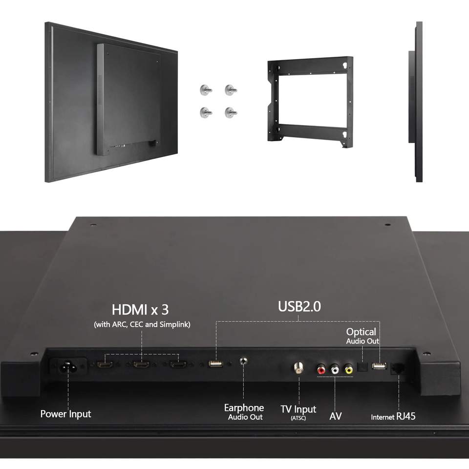 43 Inches Smart Mirror LED TV 4K UHD Waterproof IP65 with Built-in Wi-Fi and Speaker for Hotel Kitchen Bathroom Use