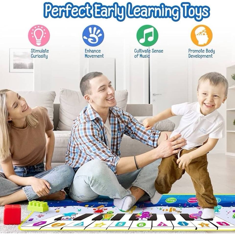 43\" Kids Electronic Touch Play Musical Piano Mat Battery Operated Toy with Musical Instruments for Infants and Children