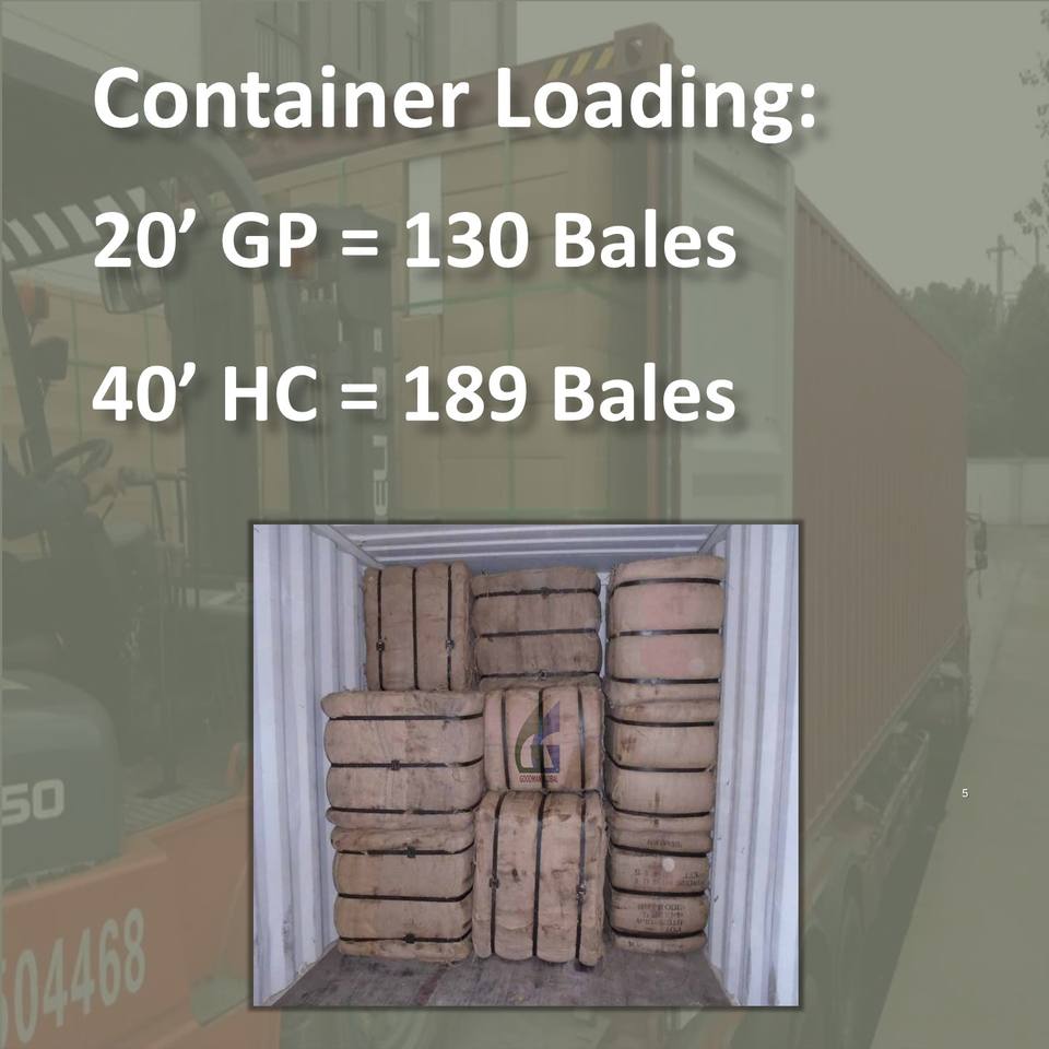 Packing & Loading:250 bags/bale; 130 bales/20ft or 189 bales/40ft HC Container