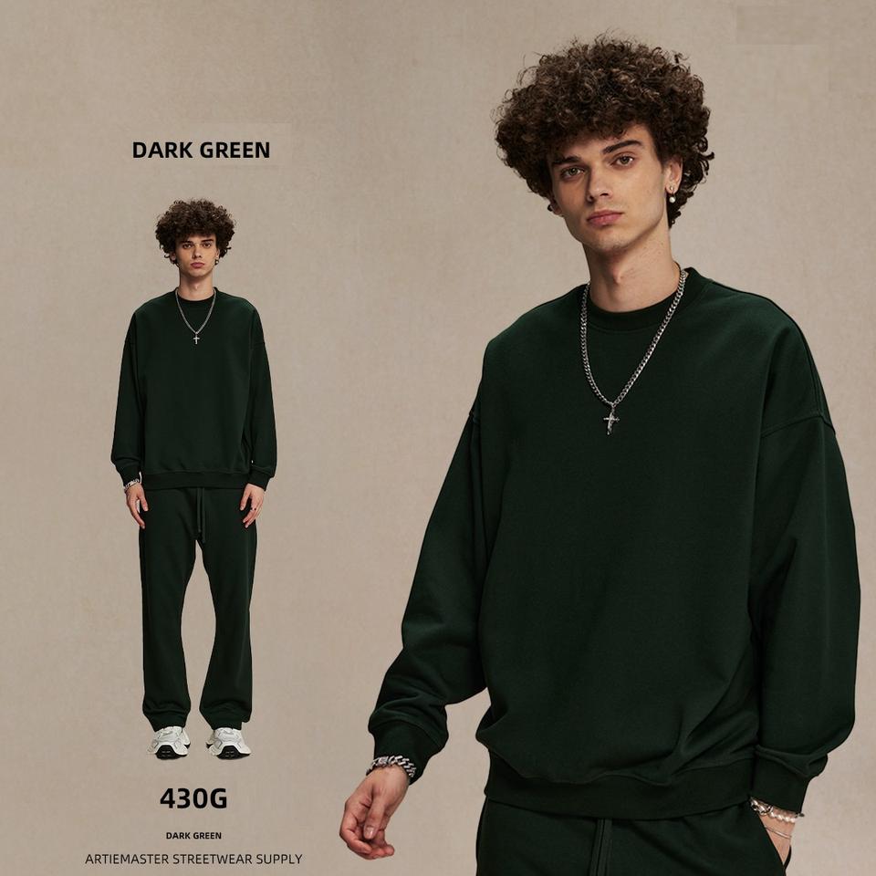 430 GSM Fleece Lined Round Neck Sweatshirt Street Style Trendy Brand Unisex Pullover for Autumn