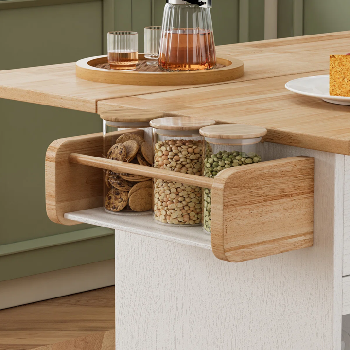 44 Inch Kitchen Island Solid Wood Top, Wine Storage, Spice Rack, Towel Rack, Wine Glass Holder, Rolling Kitchen Island Table