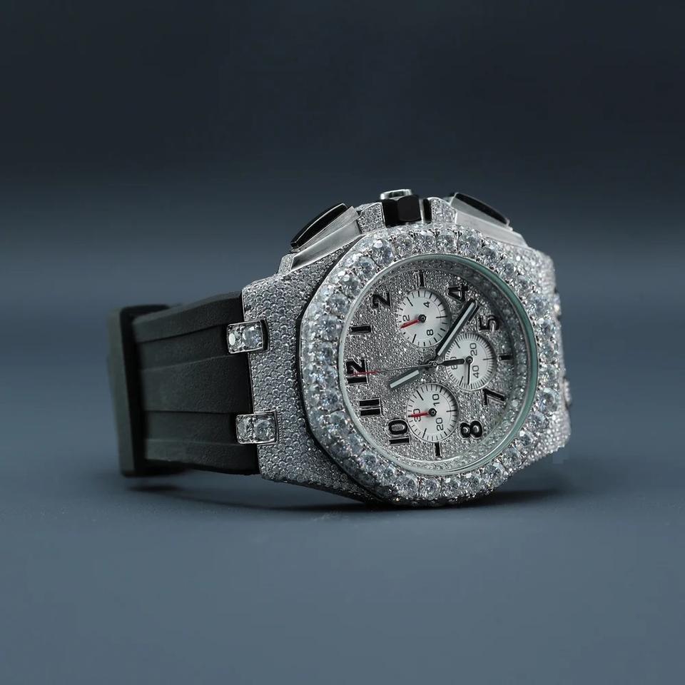 44MM Custom Logo Quartz Movement Watch Sapphire Glass Stainless Steel Bracelet 100 Meter Waterproof Sports Moissanite Watch UK