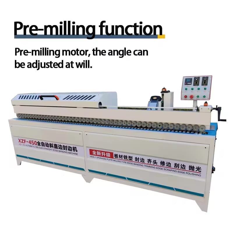 45 Degree Pre Milling Edge Bander Automatic Trimming Edge Machine for MDF Production Gluing and Cleaning Function
