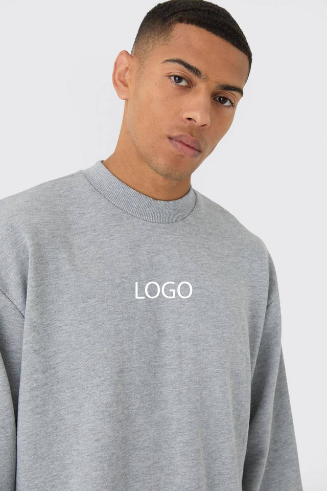 Unisex Heather Grey 450GSM 100% Cotton Sports Sweatshirts Breathable Crew Neck Hoodies with Custom Logo Plain Dyed for Winter
