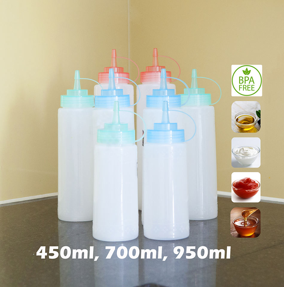 450ml LDPE Sauce Bottle 15oz BPA-Free Refillable Seasoning Squeeze Food Grade Sealable Screw Cap for Restaurant Olive Cookware