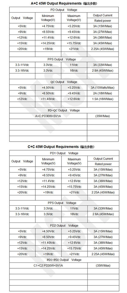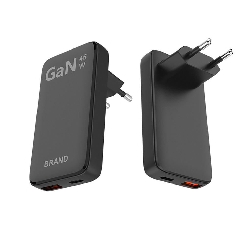 45W OEM Custom Ultra Slim GaN Fast Charger USB-C Dual Port QC3.0/PD Power Adapter for for Laptop Tablet