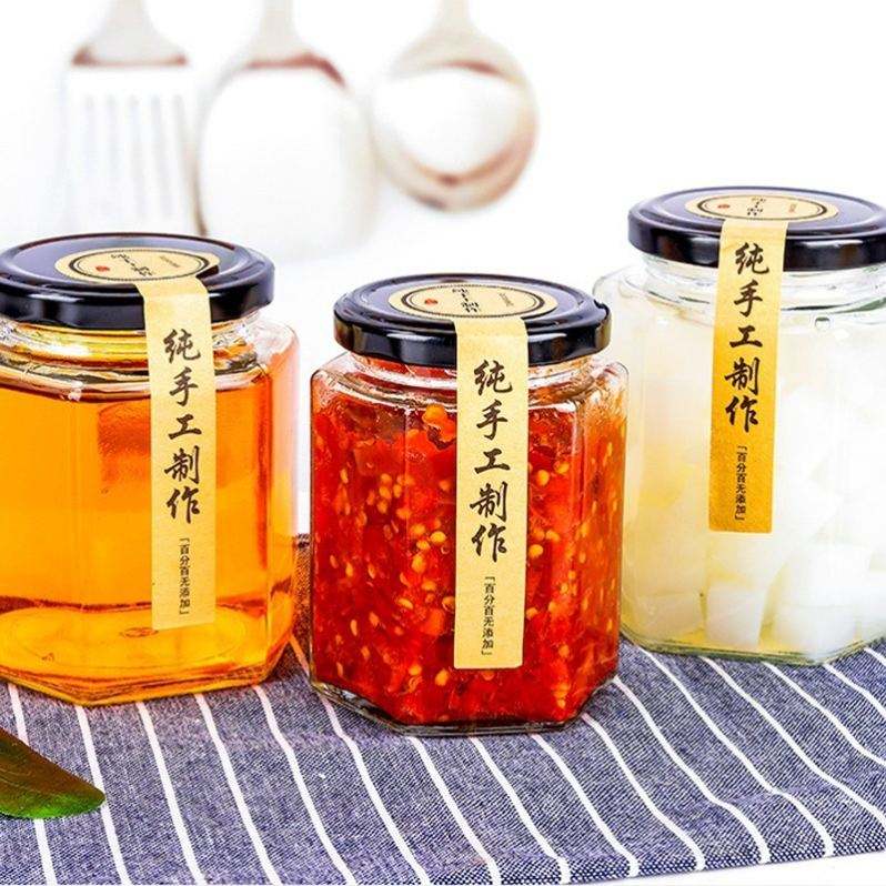 45ml-730ml Hexagonal Glass Jar Hexagonal Sauce and Honey Jar Hexagonal Jam Transparent sealed Jar with Lid