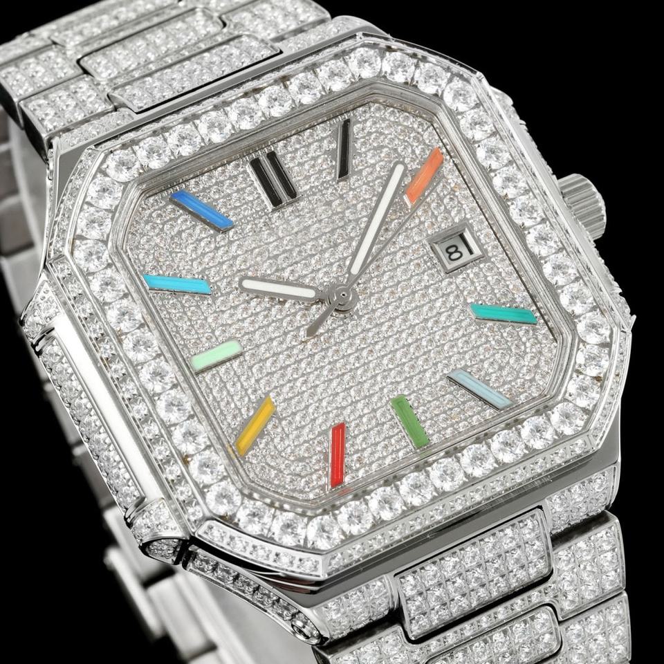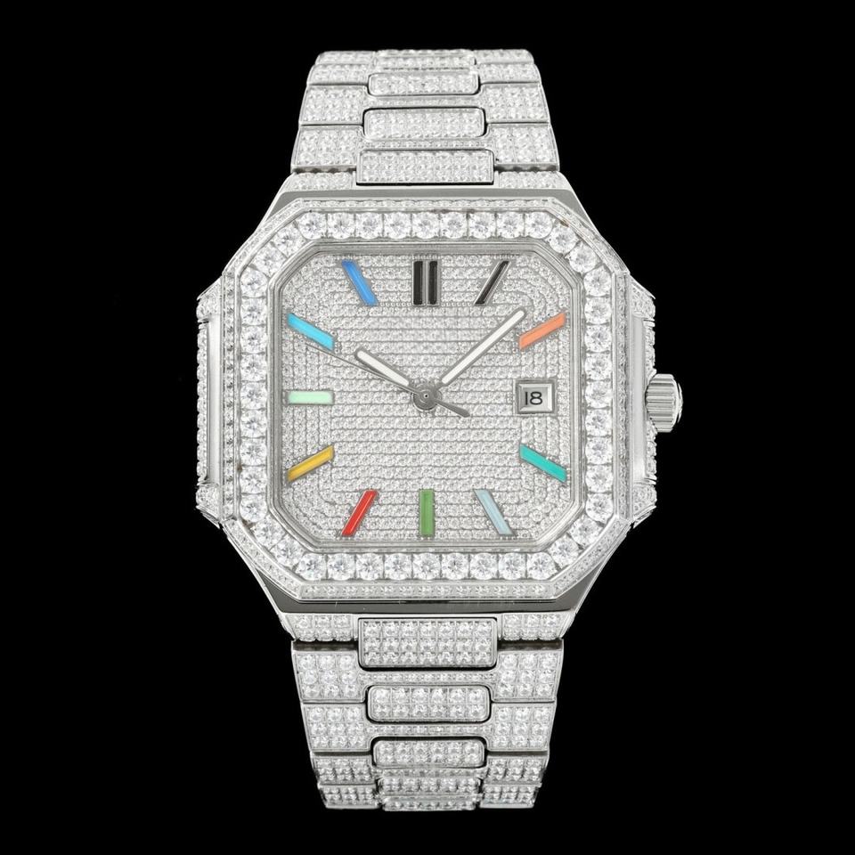 45mm crystal mechanical watch with diamonds, luxurious design, stylish men's wristwatch by a renowned designer