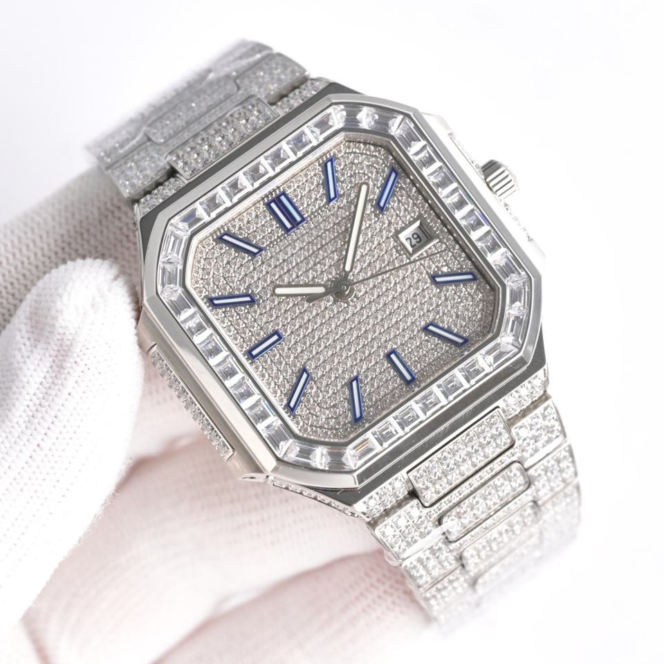 45mm high-quality mechanical crystal watch with ETA 330 movement 5821 T-shaped diamond stainless steel, brand new