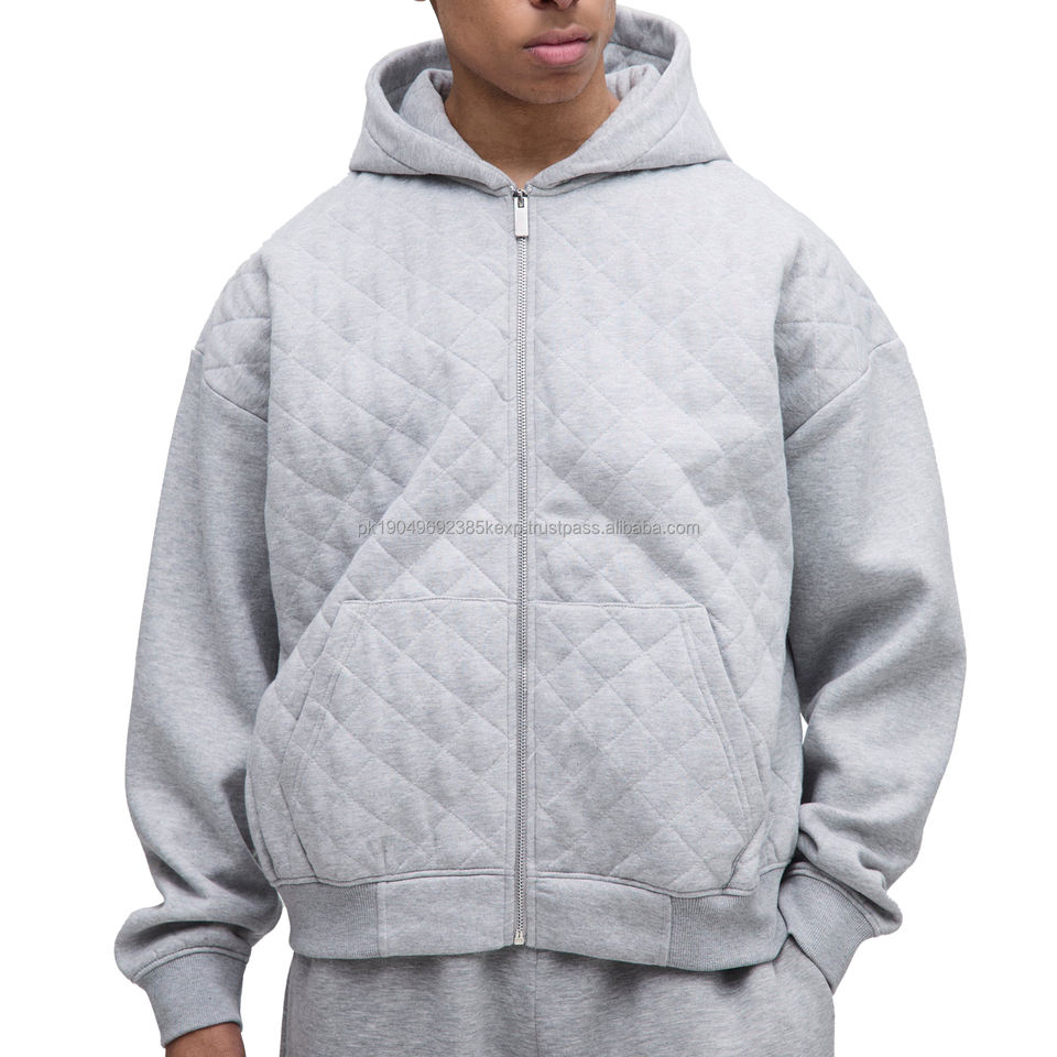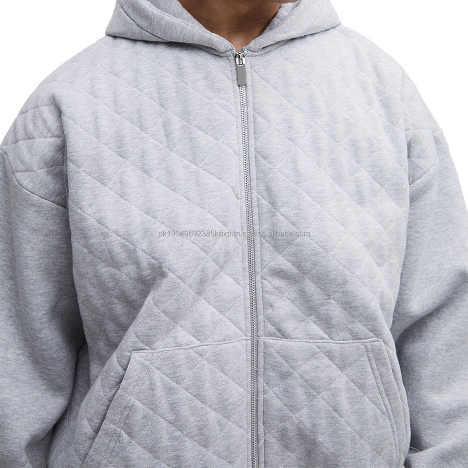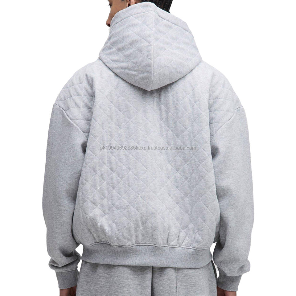 460 Grams Heavy Thick Zip-Up Quilted Fleece Boxy Cropped Pullover Hoodie Custom Embroidery 100% Cotton Quick Dry Breathable for