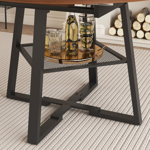 47 Inch Antique Extendable Round Dining Table for 4-8 Hotel Use Walnut Finish Metal Frame Thickened Top