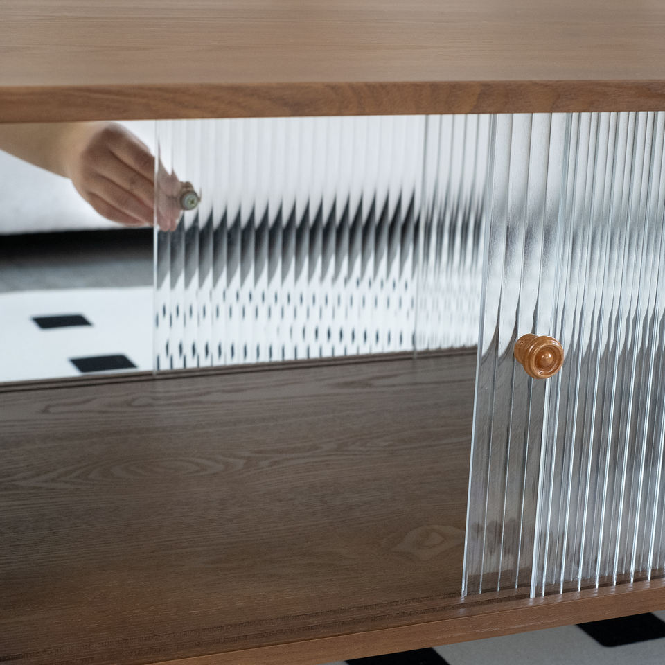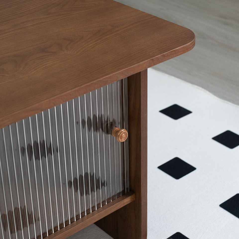 47-Inch Rectangular Modern Minimalist Wood Coffee Table with Storage Cabinet and Glass Sliding Doors for Living Room