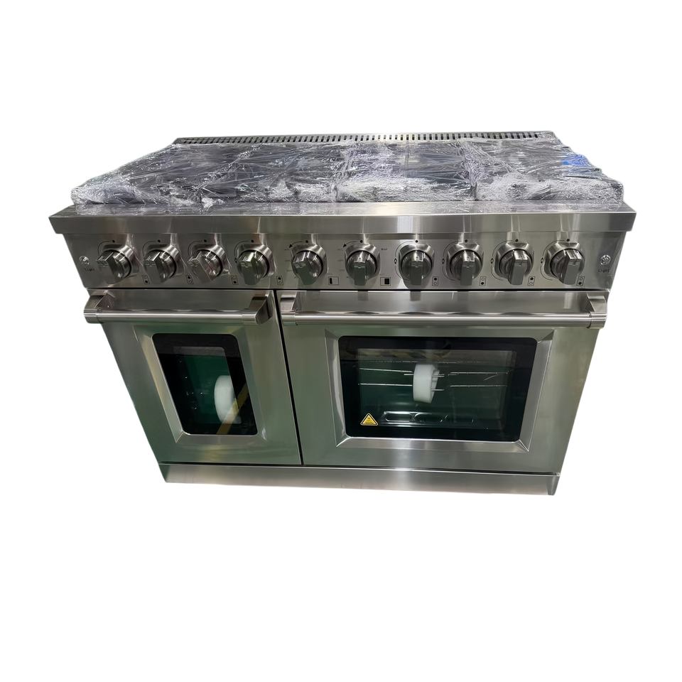 48 Inch 7.0 cu. ft. Outdoor Stoves for Cooking, 7 Burners, Double Oven, Seamless Welded Oven Interior in Stainless Steel