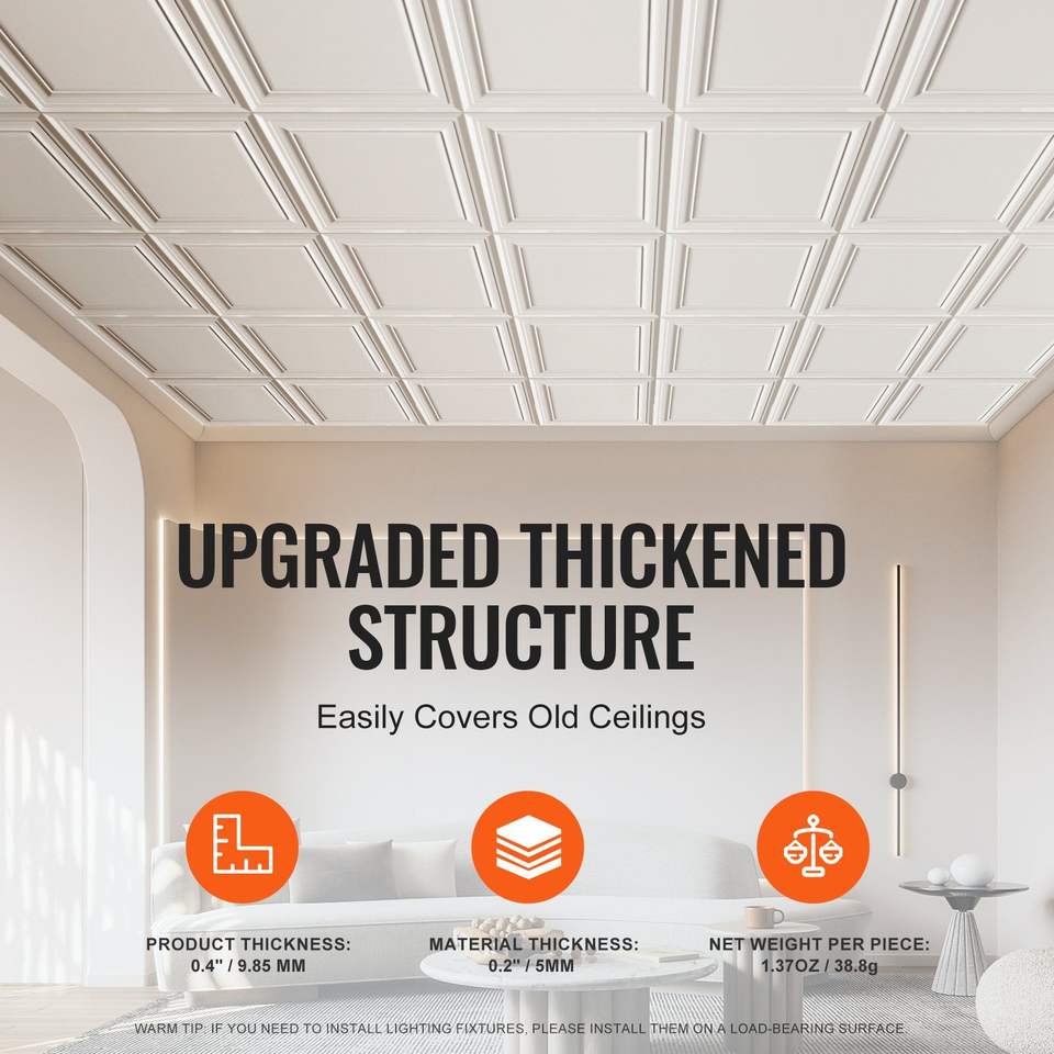 "48-Pack Polystyrene 20x20in Ceiling Tiles Easy Install No Glue Required"