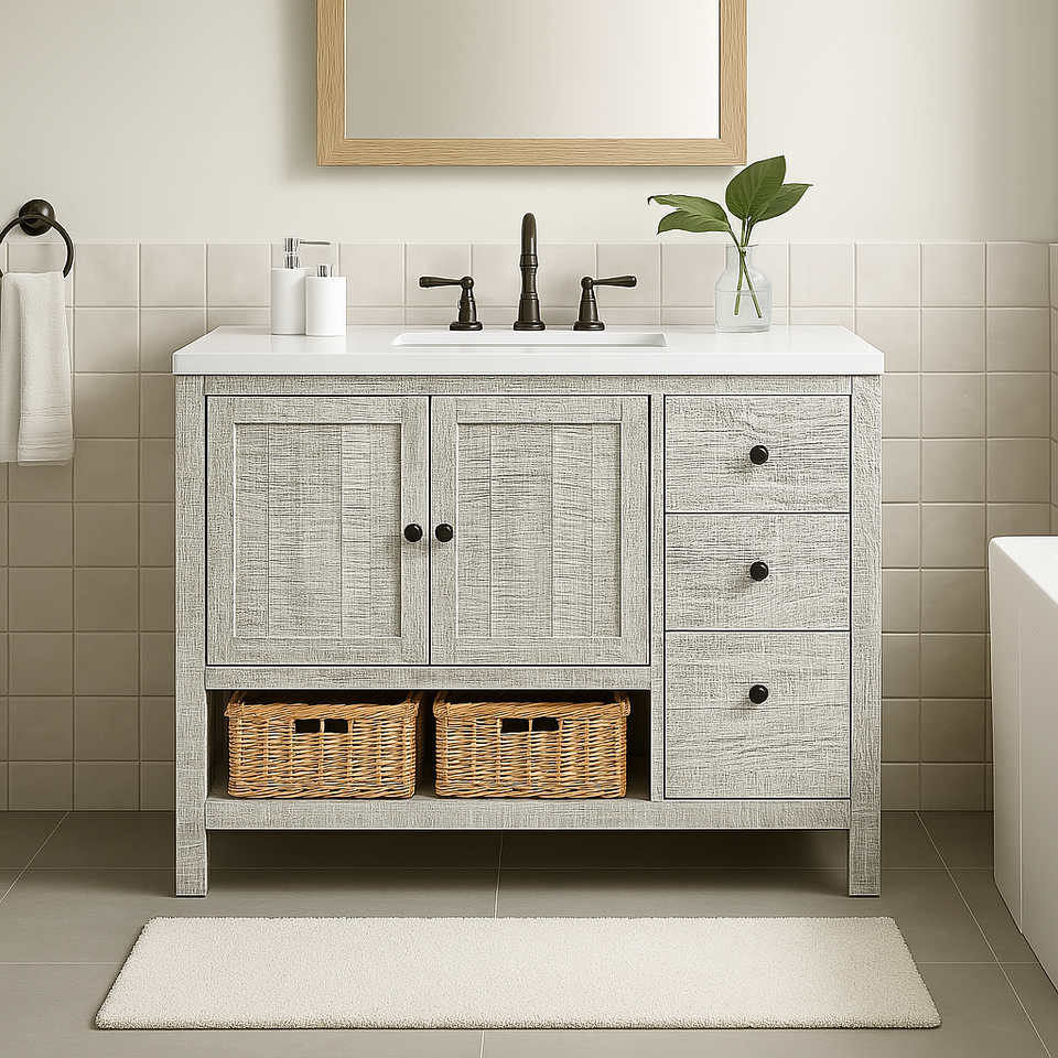 Antique 48-Inch Natural KD Furniture Vanity for Bathroom Non-Toxic Water Base Finish Strong Construction for Hotels